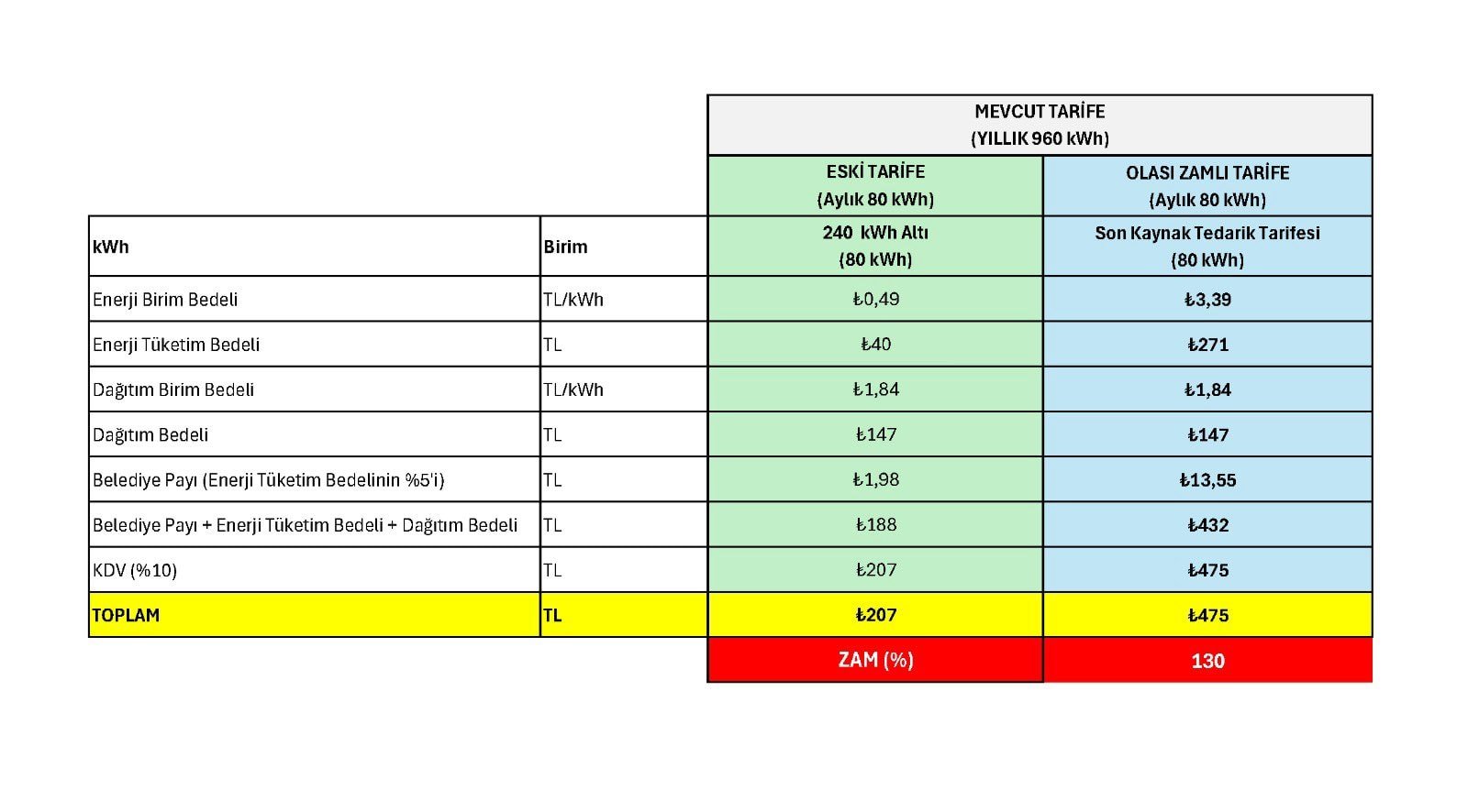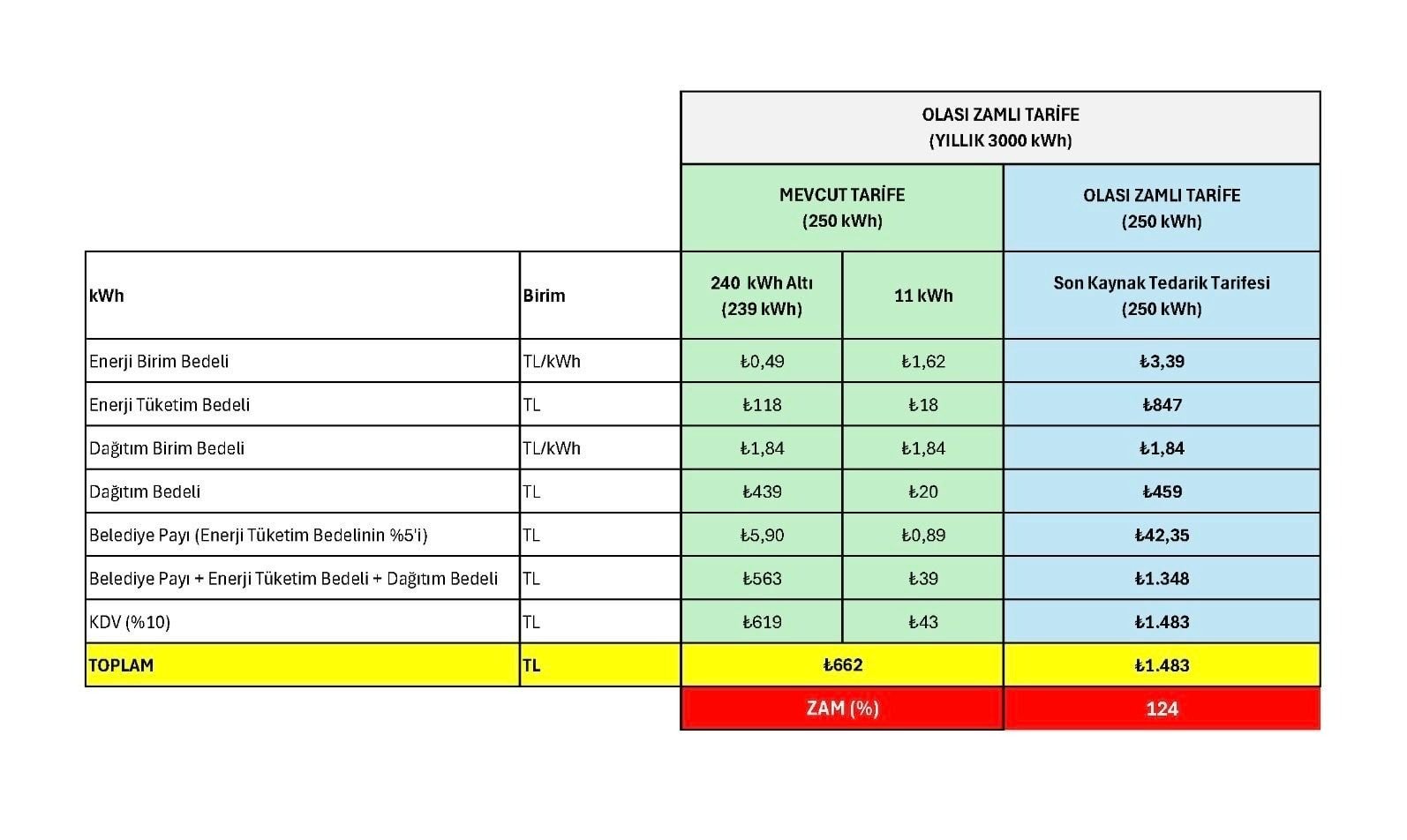 Apartman aidatları içinde yer alan ortak tüketim elektrik faturalarındaki toplam zam oranı;