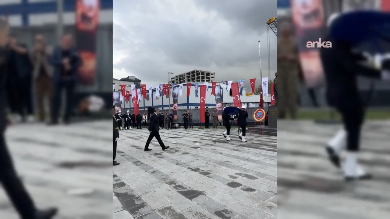 Akın, anıta çelenk bırakma esnasında, CHP’li meclis üyeleri ve katılımcılar sırtlarını dönerek protesto gösterisinde bulundu.