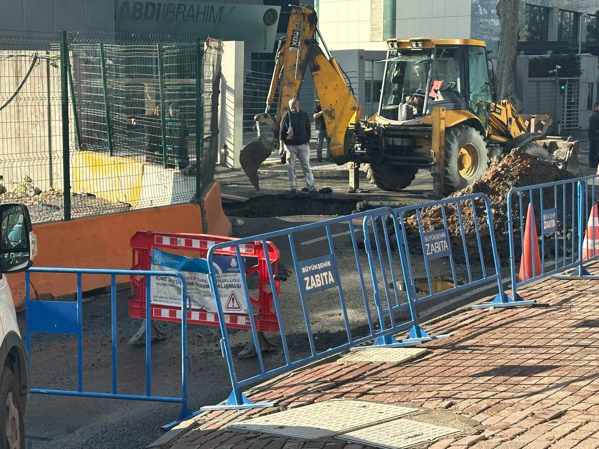 Yolun çökmesine neden olan olayın, bölgede meydana gelen su borusu patlaması olduğu ifade ediliyor.