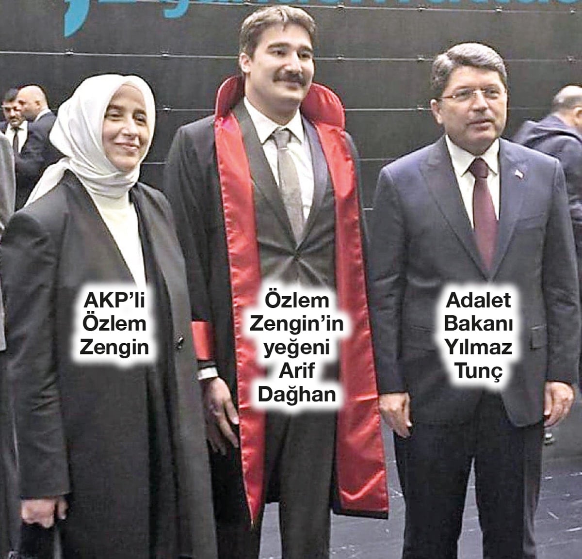 Muhalefetin sınavsız liyakatsız işe alım süreci eleştirisine “Utanmıyoruz, gurur duyuyoruz” yanıtını veren AKP Grup Başkanvekili Özlem Zengin’in yeğeni Arif Dağhan, Konya’da hakimlik yapmaktadır. Ocak ayında gerçekleştirilen adli yargı kura töreni sırasında Cumhurbaşkanı Erdoğan’a seslenen Özlem Zengin, “Kurada hemen göremeyeceğiz ama benim yeğenimi de, Arif Dağhan’ı da telaffuz etmek istiyorum. Hiç olmazsa size bir selam versin” ifadelerini kullandı. Zengin, “Arif’cim neredesin?” diyerek Dağhan’ı aradı ve “Biraz sonra yerini öğreniriz. Çok teşekkür ediyorum Sayın Cumhurbaşkanım” şeklinde konuşmasını tamamladı. Dağhan, bir ay sonra Konya’da göreve başladı.