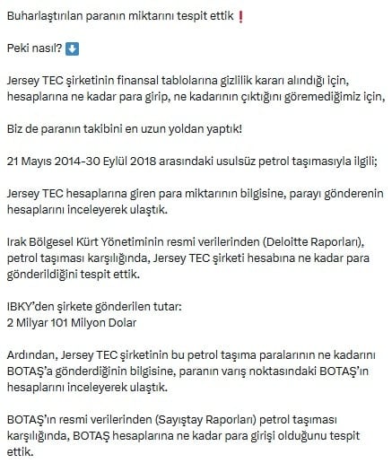 1 Milyar Doların buharlaştırıldığına ve Jersey adasındaki Turkish Energy Company (TEC) adlı kamu şirketinin hesaplarına gizlilik kararı aldırıldığına dair tespitlerimiz var.”