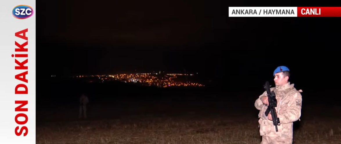 “Kesikkavak köyündeyiz, burası Haymana’nın yaklaşık 2 kilometre güneyinde yer alıyor; Ankara’nın güney kısmında bulunan bir bölge. Şu anda enkazın bulunduğu alanda çalışmalar devam ediyor. Önümüzdeki ışıklı alan, uçağın düştüğü yer.”