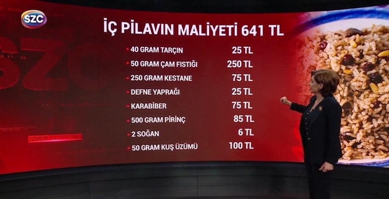 Evde iç pilav yapmanın maliyeti, birçok vatandaşı düşündürüyor. İç pilav için gerekli malzemelerin fiyatı neredeyse bin liraya ulaştı. Eğer evde iç pilavlı tavuk hazırlamayı tercih ederseniz, maliyet 941 lirayı buluyor. Ancak hindi tercih ederseniz, bütçenizden 3 bin 641 lirayı gözden çıkarmanız gerekecek.