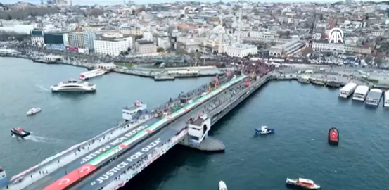 İnsanlık İttifakı ve Milli İrade Platformu tarafından düzenlenen “Sinmiyoruz, susmuyoruz, Filistin’i unutmuyoruz” mitinginde, Filistin’deki katliamların durdurulması için 400’den fazla sivil toplum kuruluşu bir araya geldi. Miting için sabah namazında camilerde toplanan on binlerce katılımcı, Galata Köprüsü’ne doğru kortejler halinde yürüyüşe geçti.