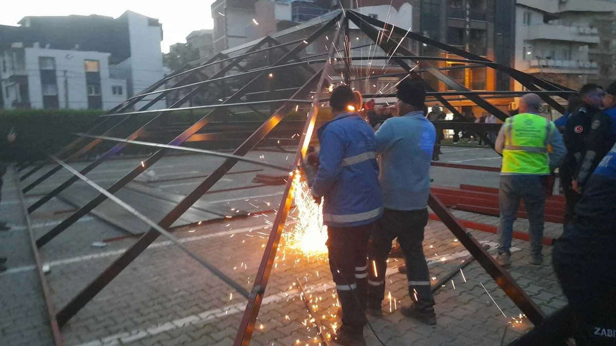 Demirlerin kesildiği esnada Kuşadası Belediyesi ekipleri de olay yerine intikal etti. Akşam saatlerinde iki tarafın karşı karşıya gelmesiyle gerginlik yükseldi. Yaşanan sözlü tartışmaların arbede haline dönüşmesi üzerine bölgeye çok sayıda polis ekibi gönderildi. Polis, taraflar arasında bir barikat kurarak müdahalede bulundu.