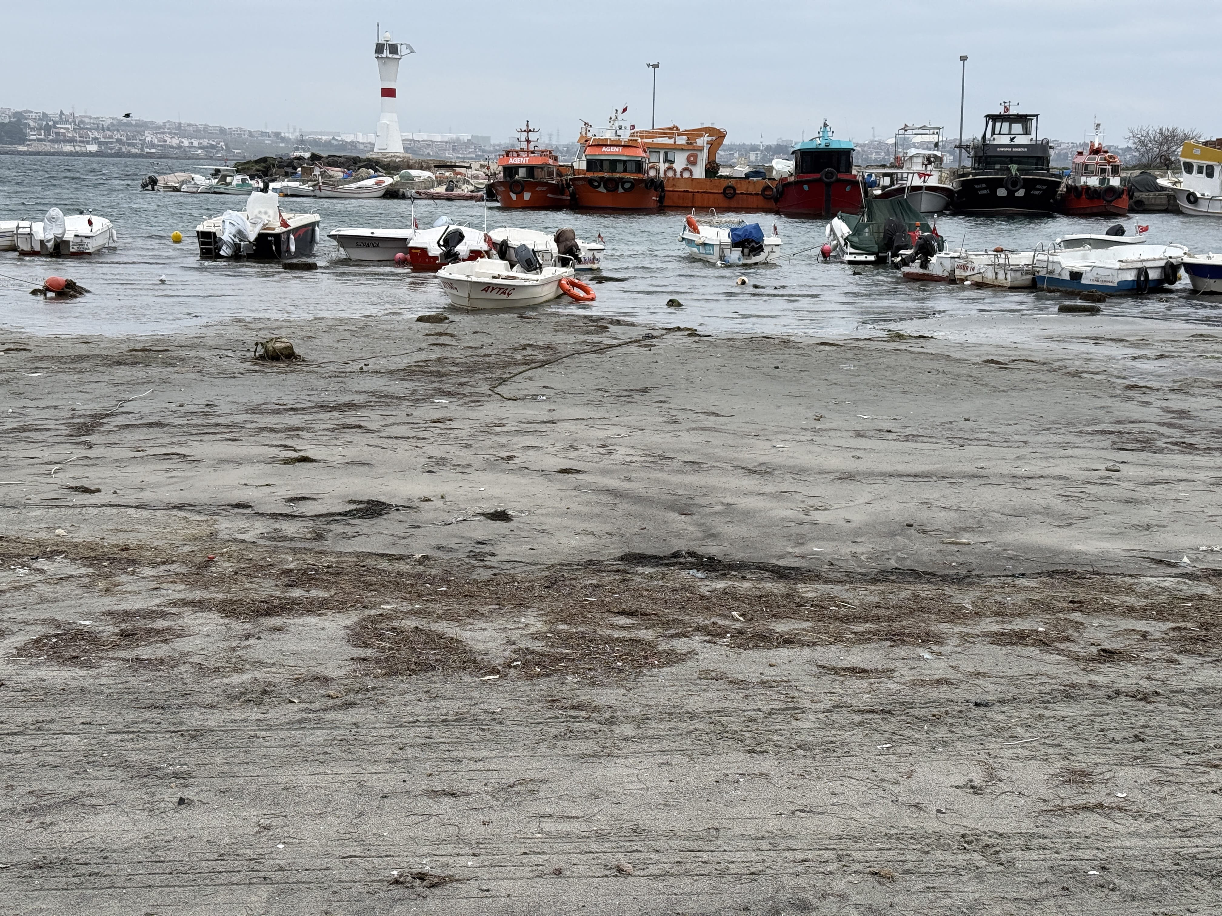 Marmaraereğlisi ilçe merkezindeki sahilde ise deniz suyu 10 metre kadar çekildi.